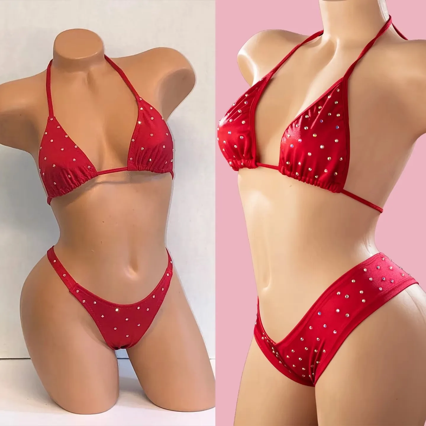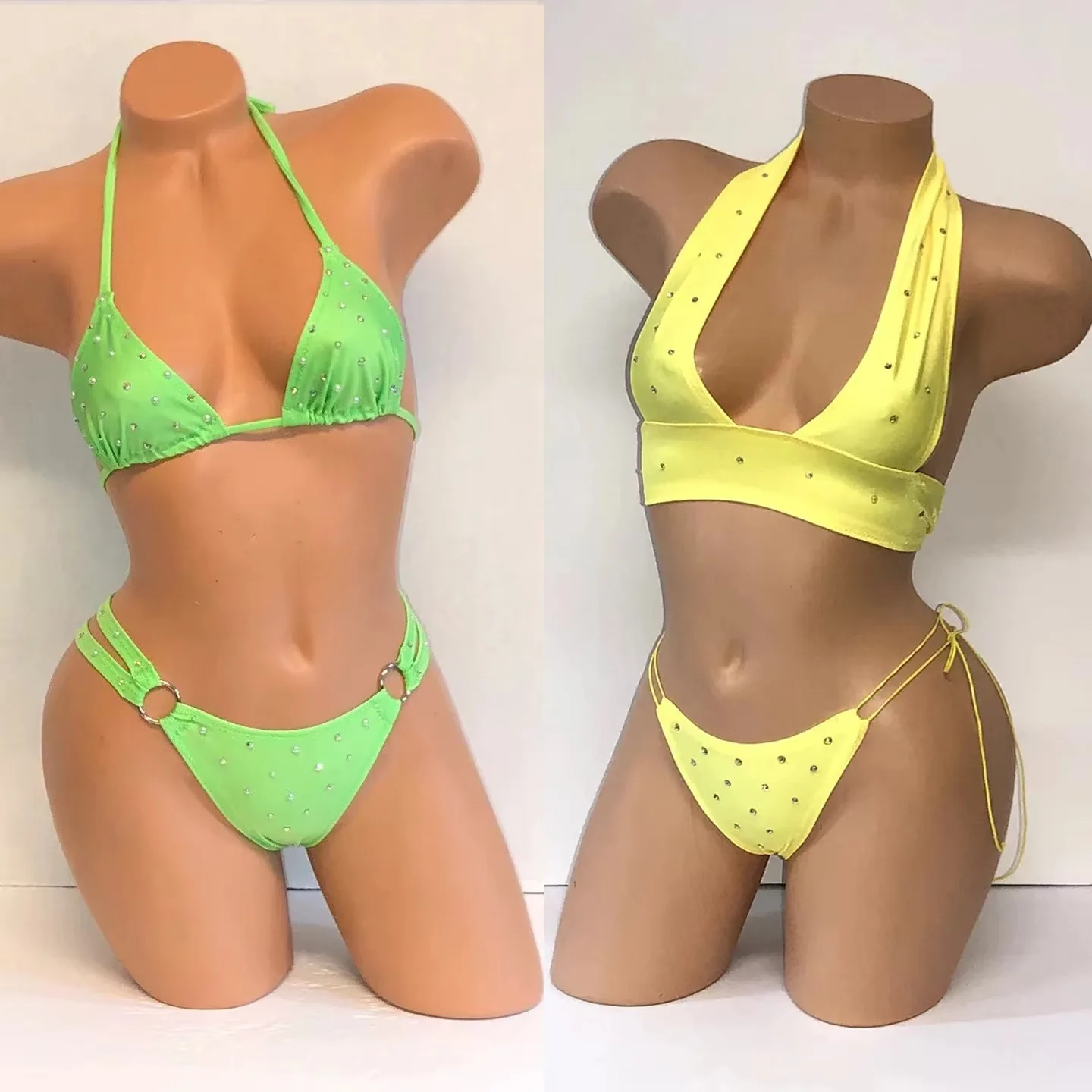 Huili Luxury Micro Bikini Set for Women OEM High Quality Designer Swimwear Custom Beading Two Pieces Rhinestones Leopard Print